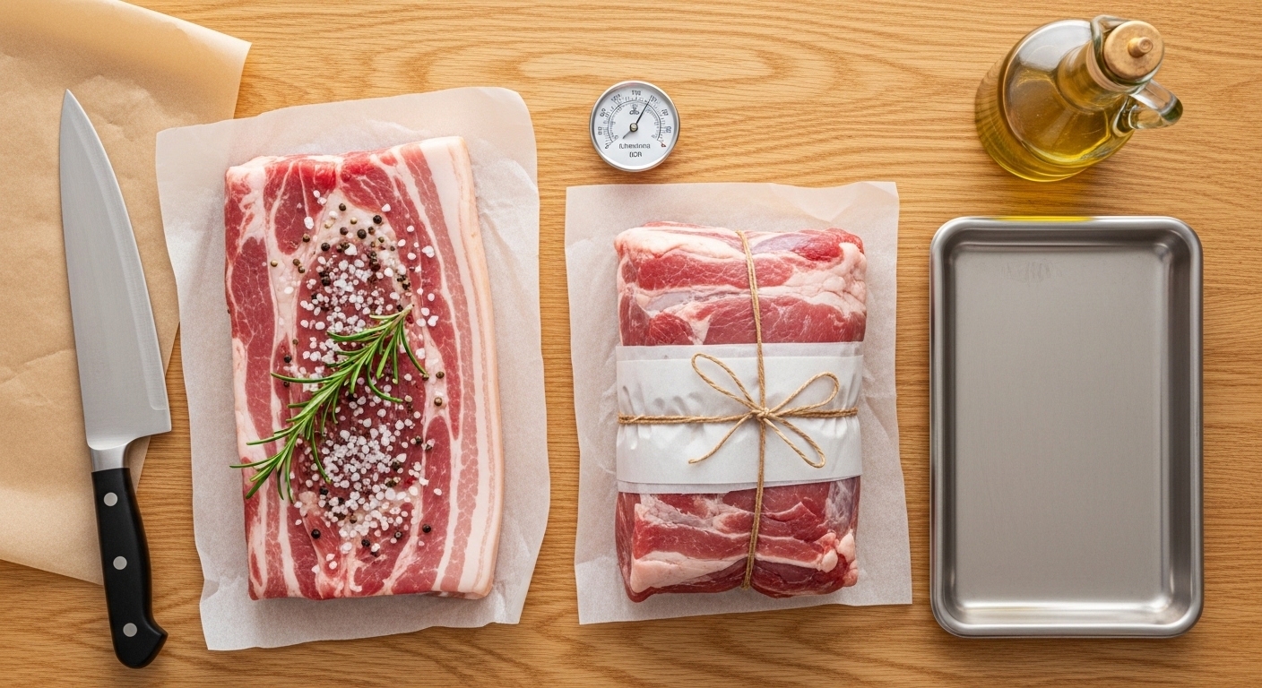 美味しいパンチェッタを作るための第一歩は、素材選びにあります。選ぶべきは、鮮度が良く、脂身と赤身のバランスが美しい豚バラ肉です。特に「脂身の質」は完成時の味を大きく左右します。質の良い豚肉の脂は、常温でもベタつかず、指で触れると体温でスッと溶けるような滑らかさを持っています。