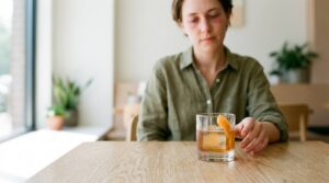 丁寧な動作でグラスを扱い、静かにその場を楽しむ姿は、見る人に安心感と憧れを与えます。